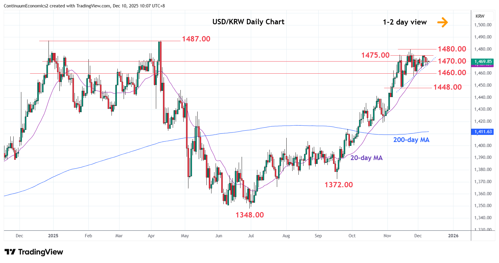 Chart USD/KRW Update: Extend consolidation below 1475.00 resistance