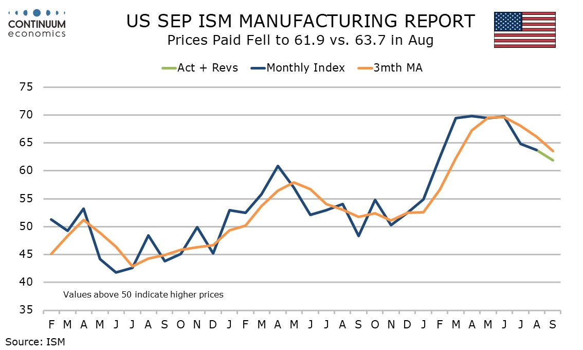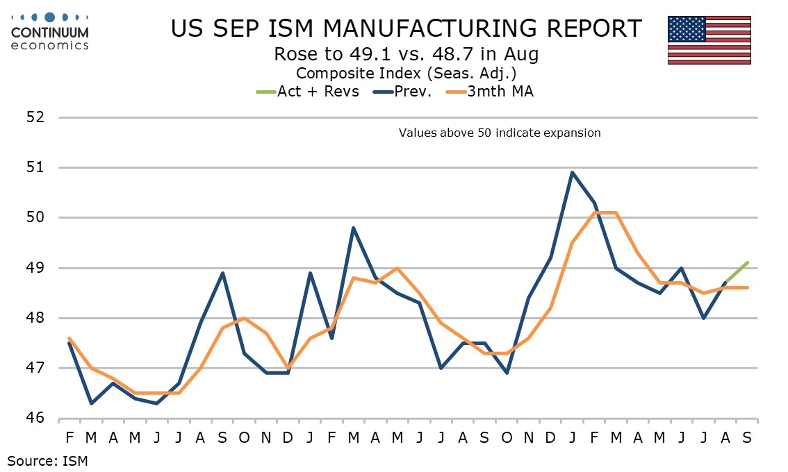 U.S. September ISM Manufacturing - Slightly firmer but a subdued picture