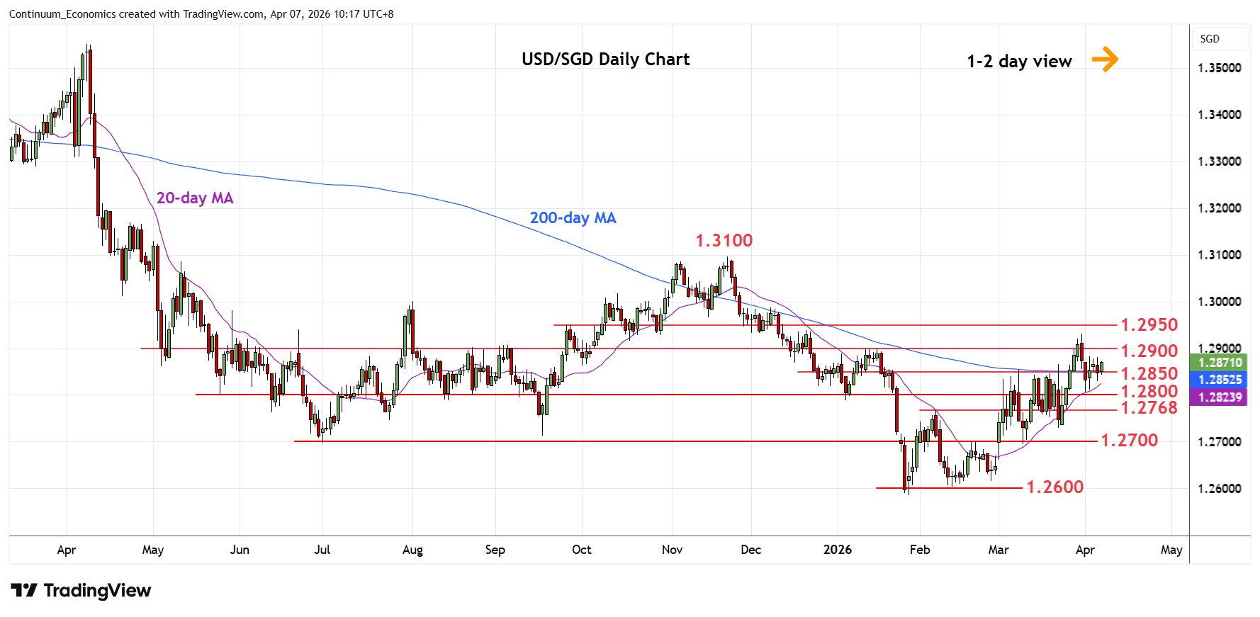 Higher in consolidation above support at the 1.2800 level to set up scope for retest of 1.2900 and 1.2930, 31 March current year high