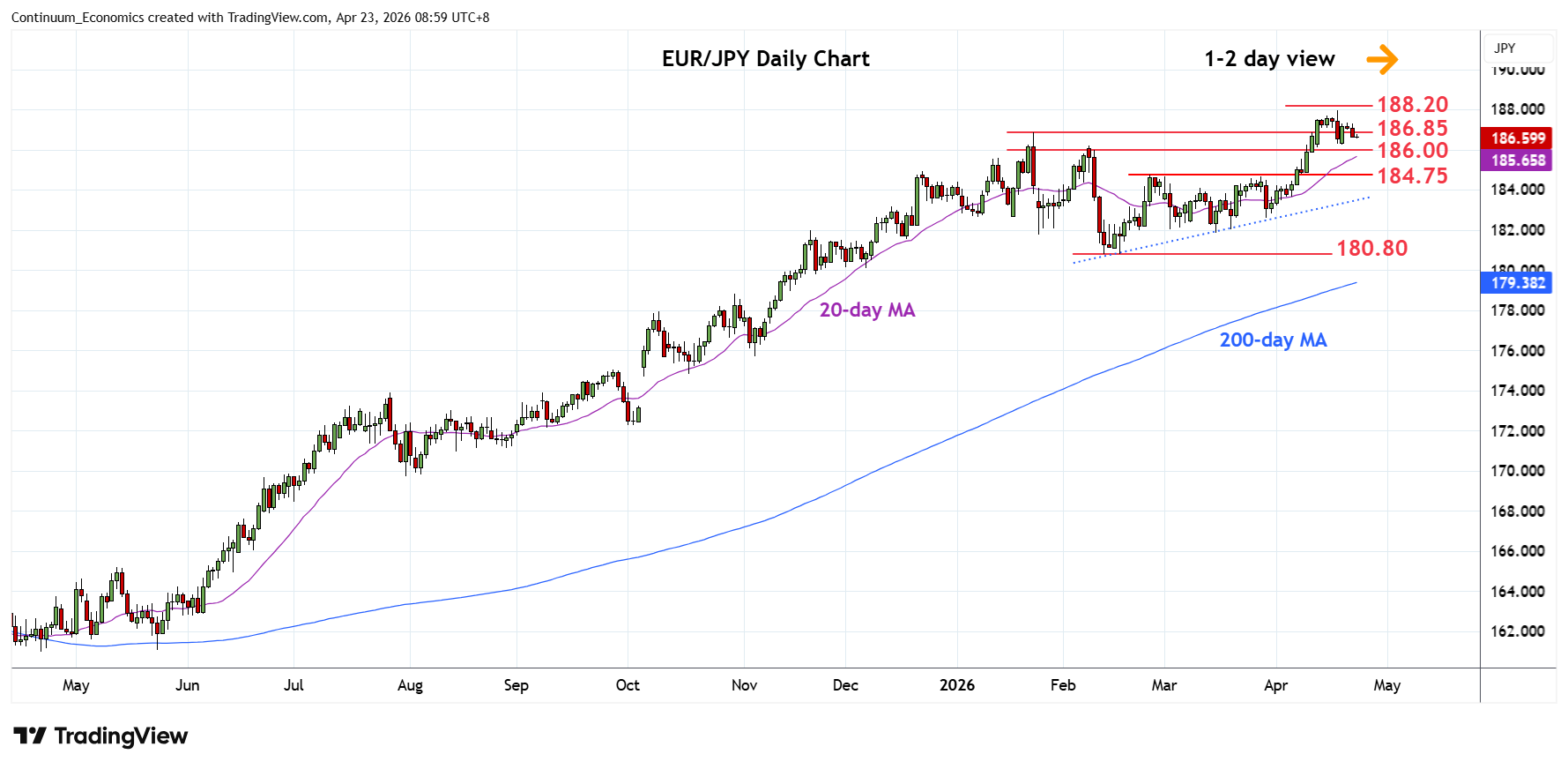 Chart EUR/JPY Update: Extend consolidation below 187.95 multi-year high