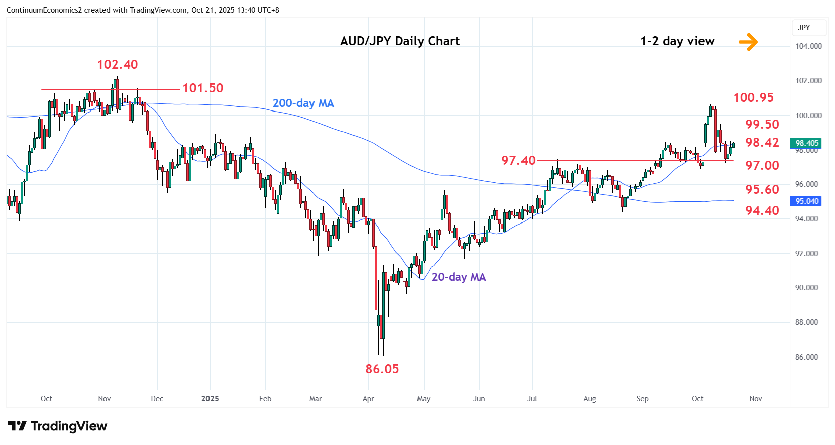 R4 | 100.95 | ** | 9 Oct YTD high | S1 | 97.40/00 | * | congestion | |
