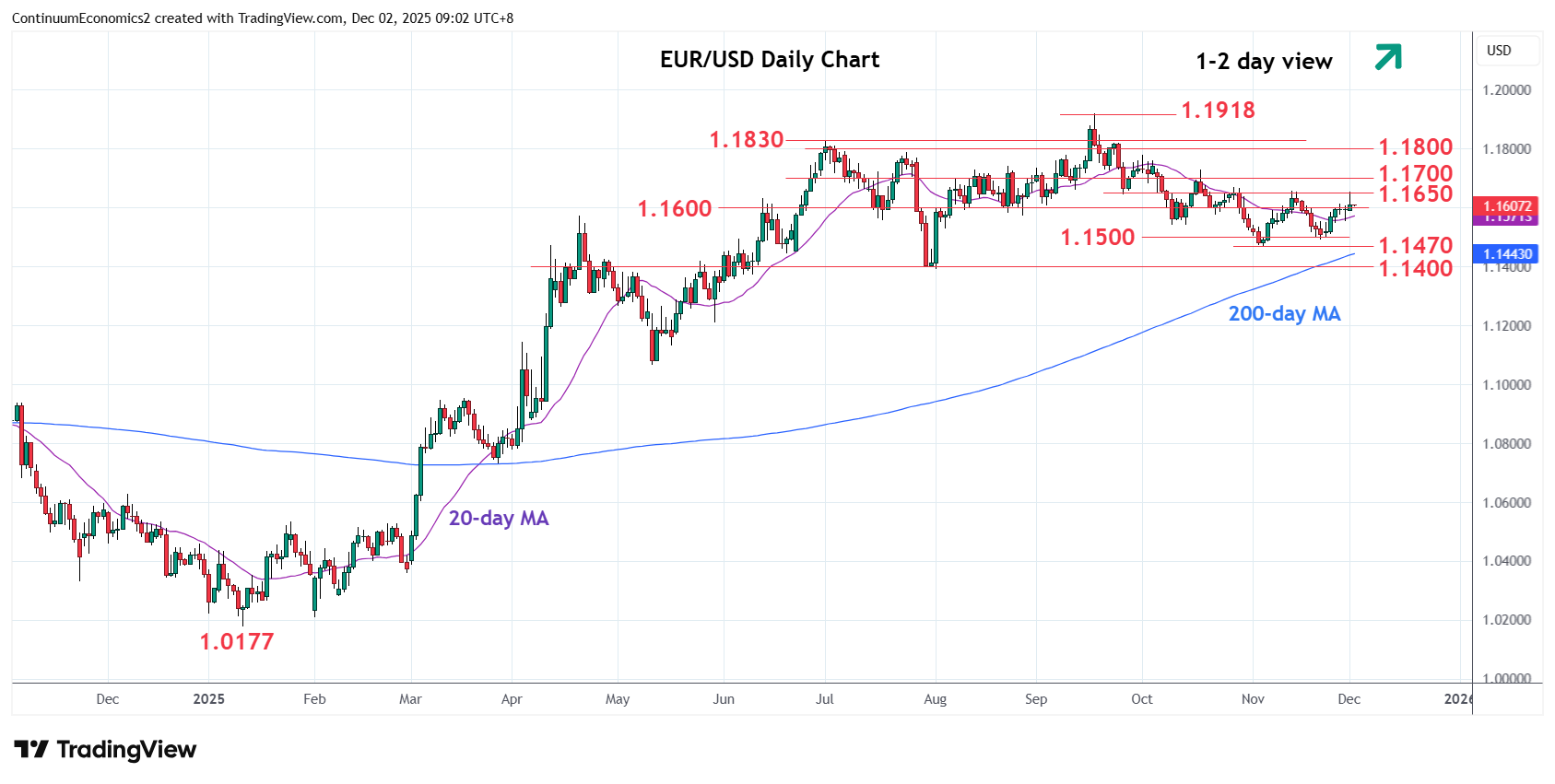 Chart EUR/USD Update: Consolidating test of 1.1650 resistance