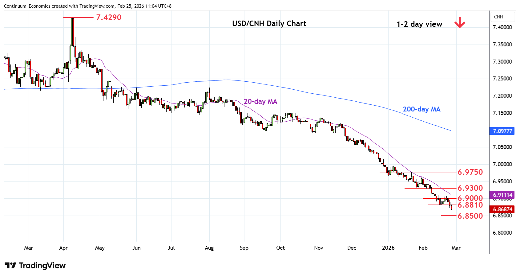 | R4 | 6.9500 | * | congestion | S1 | 6.8700 | * | 76.4% 2023/2025 rally | |