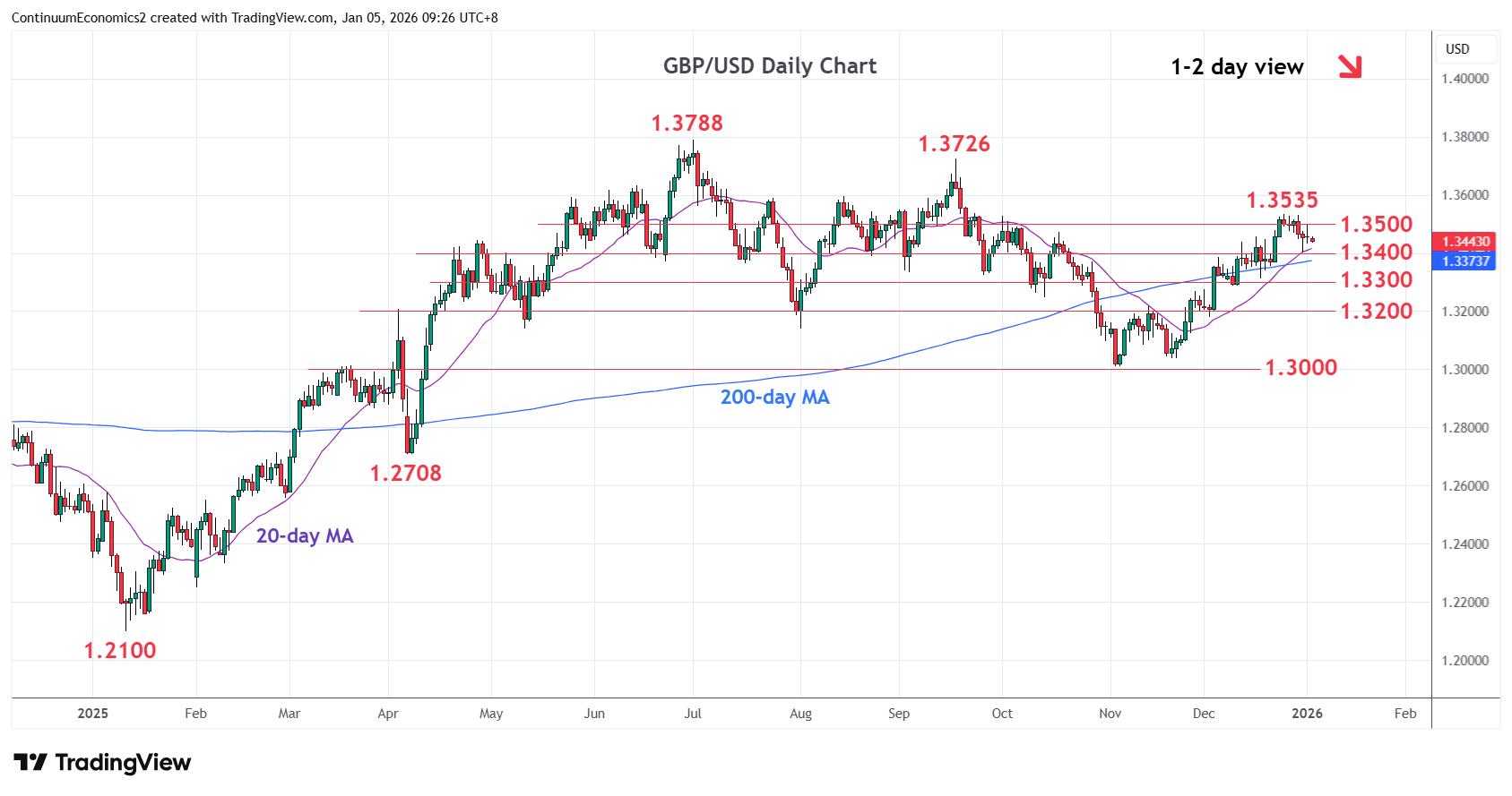 | R2 | 1.3535 | ** | 24 Dec high | S3 | 1.3250 | * | congestion | |