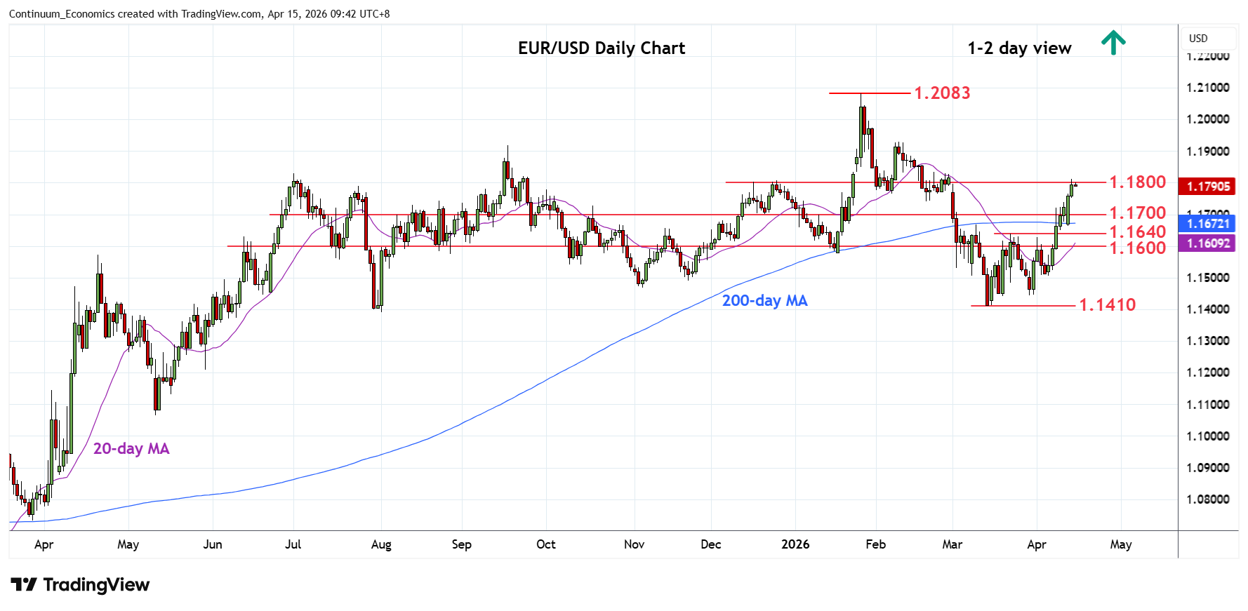 Limited on break of the 1.1800 level as prices consolidate recent strong gains from the 1.1500 low of last week