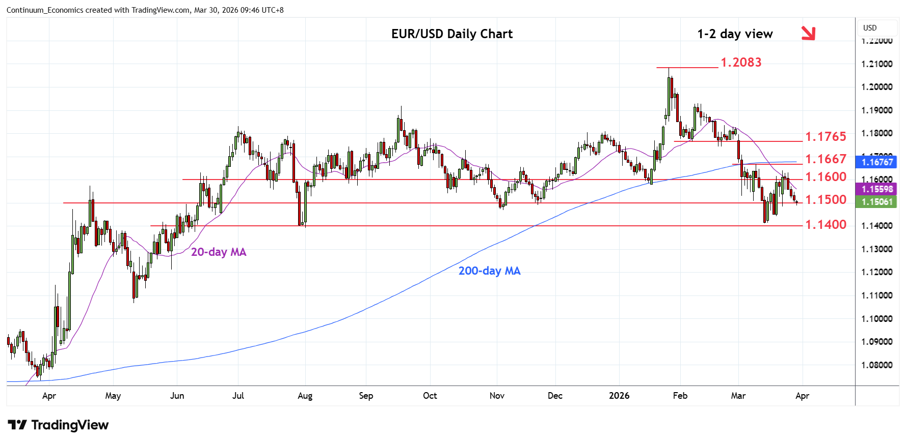 Chart EUR/USD Update: Consolidating at 1.1500, but still heavy