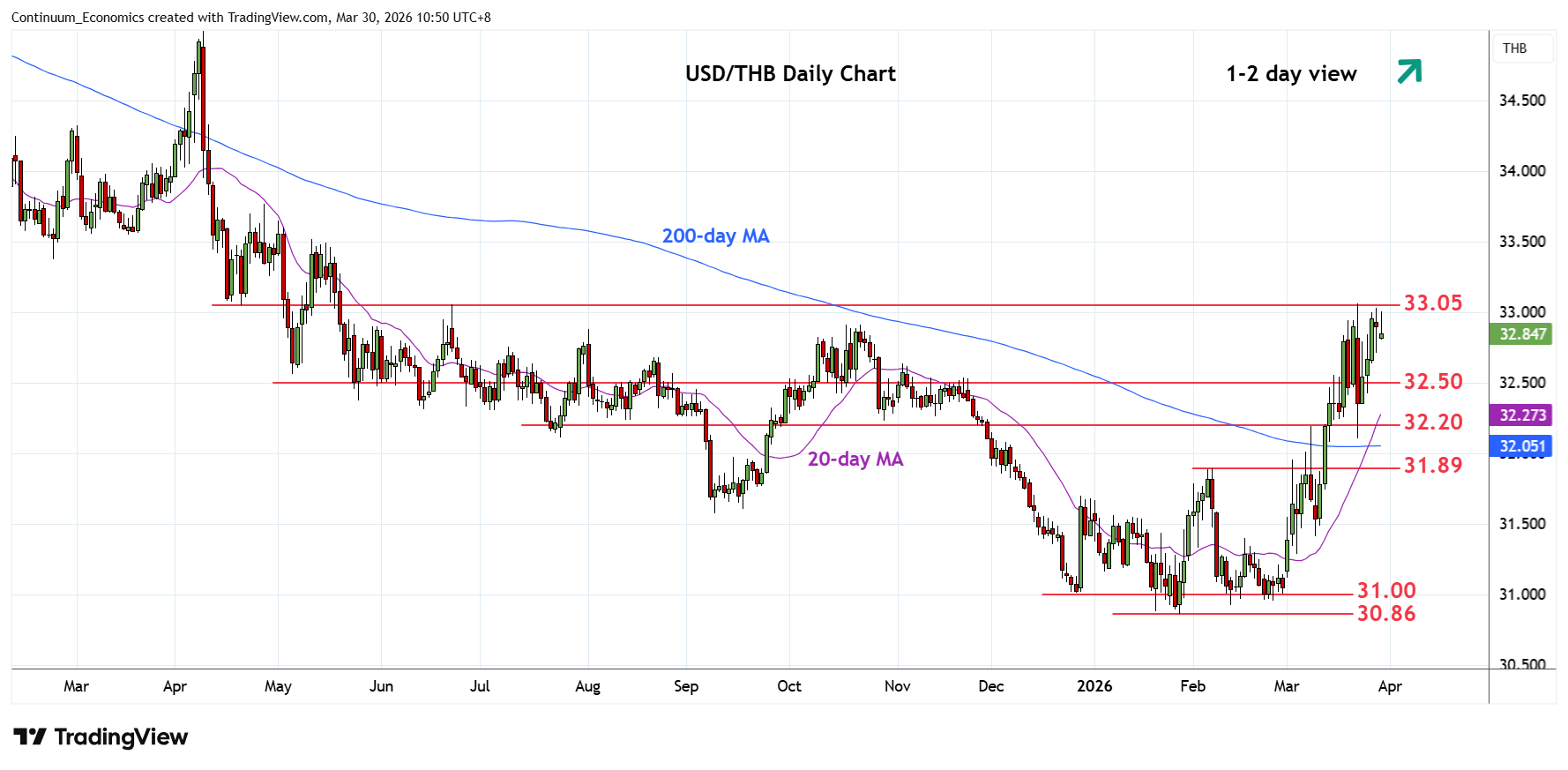 Chart USD/THB Update: Consolidating retest of 33.00/05 highs