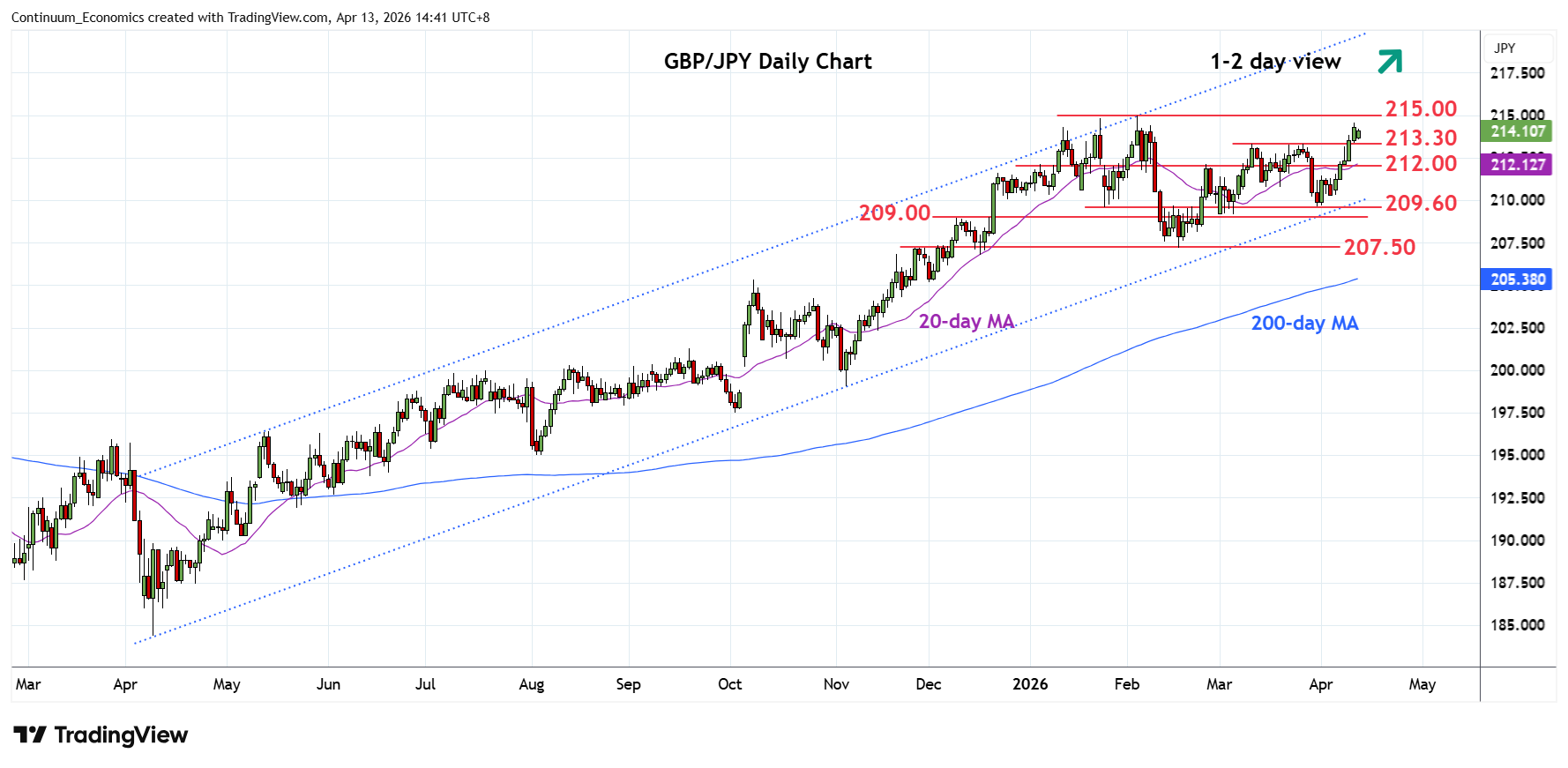 Chart GBP/JPY Update: Scope to retest of 215.00 high
