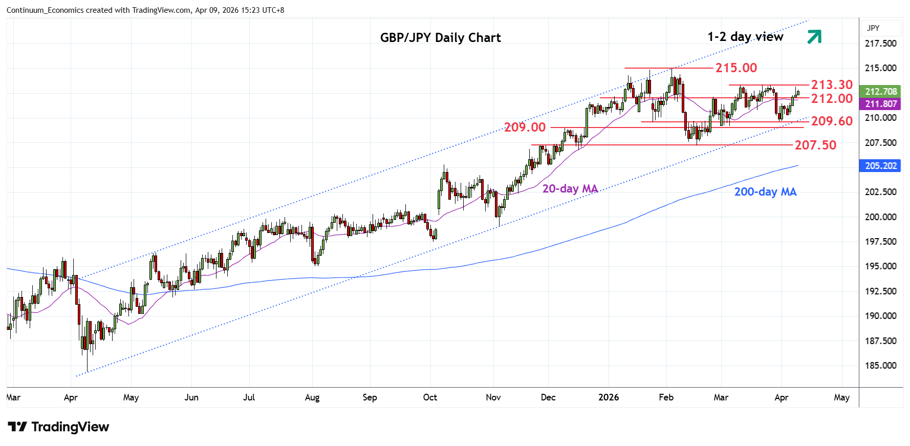 Chart GBP/JPY Update: Retest 213.30 March high