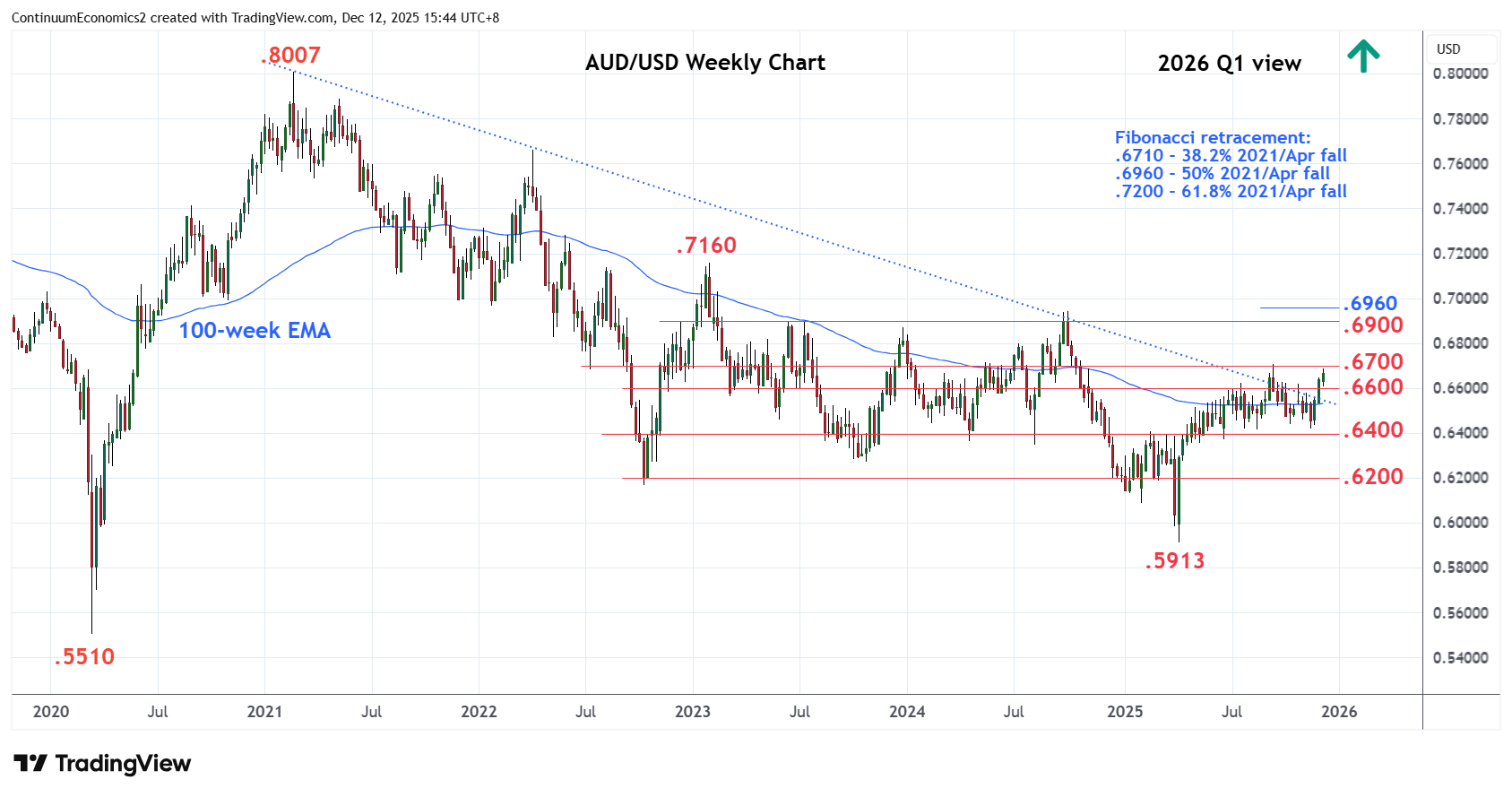 Meanwhile, support is raised to the .6550/.6500 congestion area which coincides with trend-line break from the 2021 and 2011 year highs. This area and the .6415 August/November lows area expected to underpin and sustain bullish gains from the .5913, April current year low.