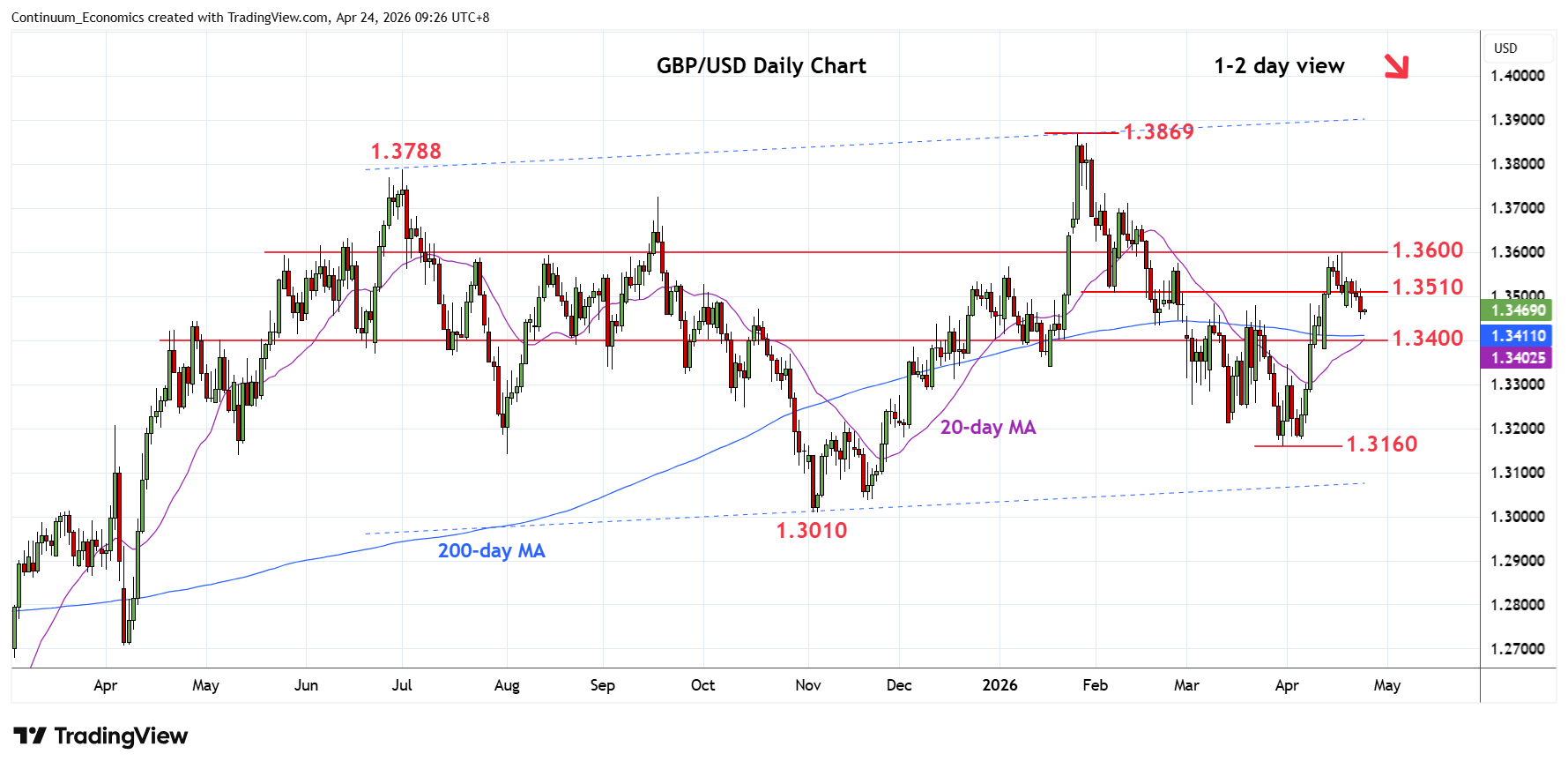 Break of the support at the 1.3480/70 area see prices extending pullback from the 1.3600 high to reach the 1.3450 congestion