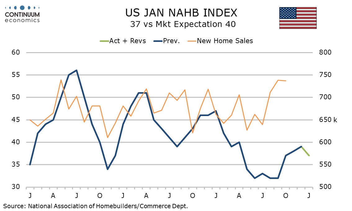 January’s NAHB homebuilders’ index of 37 from 39 has seen a correction after three straight gains. The gains in Q4 appear to have been supported by Fed easing. If the Fed pauses in Q1, the housing sector revival may lose momentum too.