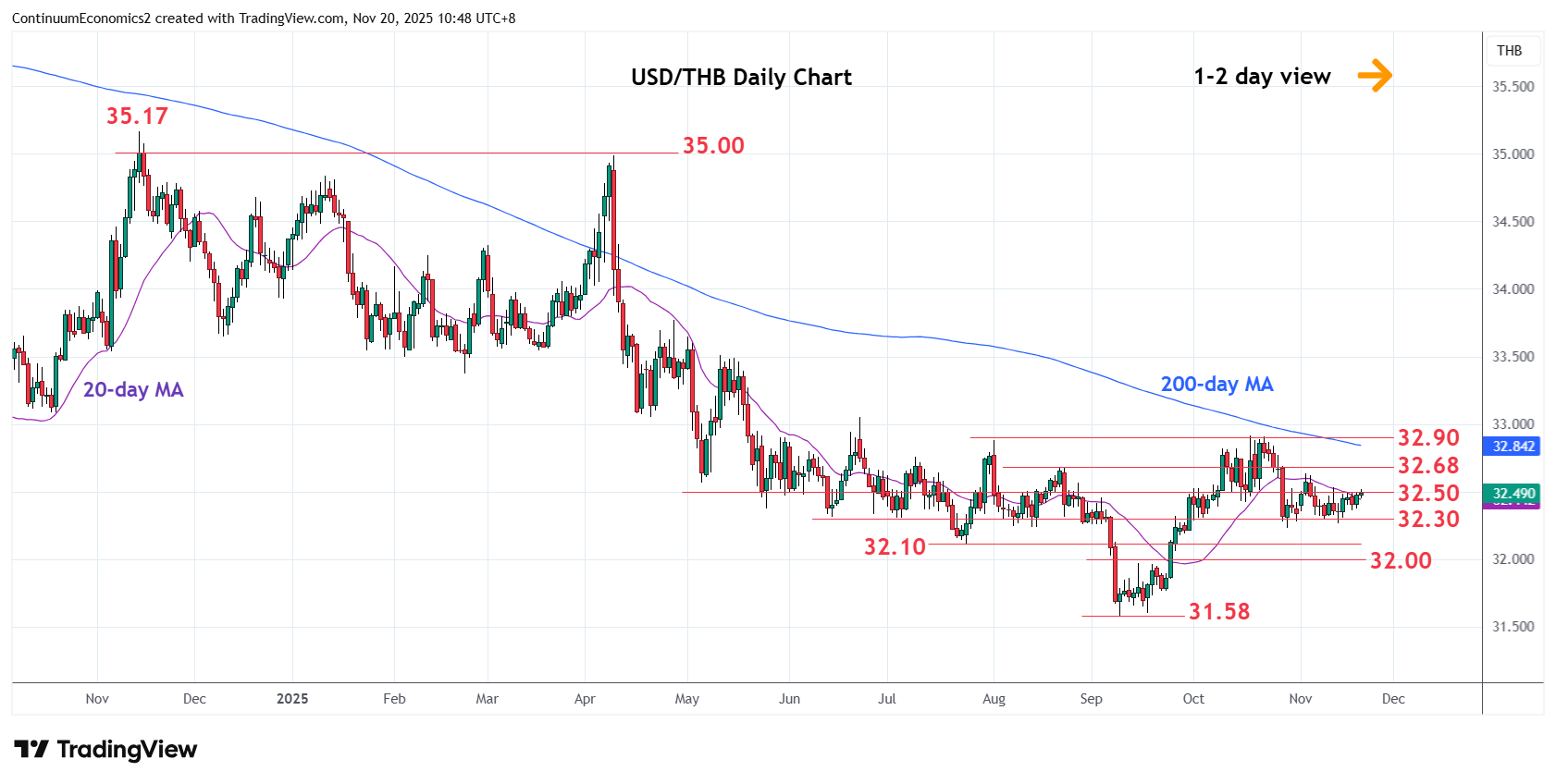 Chart USD/THB Update: Higher in consolidation to pressure 32.50 range high