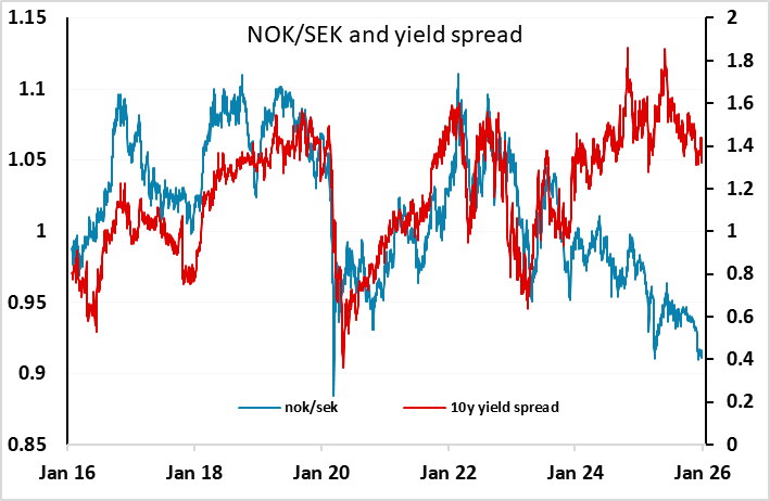 Before the North American data there is German industrial production and Norwegian CPI data. The EUR didn’t react to the very sharp rise in German orders reported on Thursday, so seems unlikely to respond to the less volatile production data. The NOK may, however, have potential to react to the CPI data. Risks may be to the downside of the 3.0% y/y market consensus. There is no Norges Bank rate cut priced in until August, and weaker data may bring expectations forward a little. However, the NOK is already trading at very weak levels relative to yield spreads, so NOK risks are more to the upside, with NOK/SEK at 0.91 looking particularly cheap.
