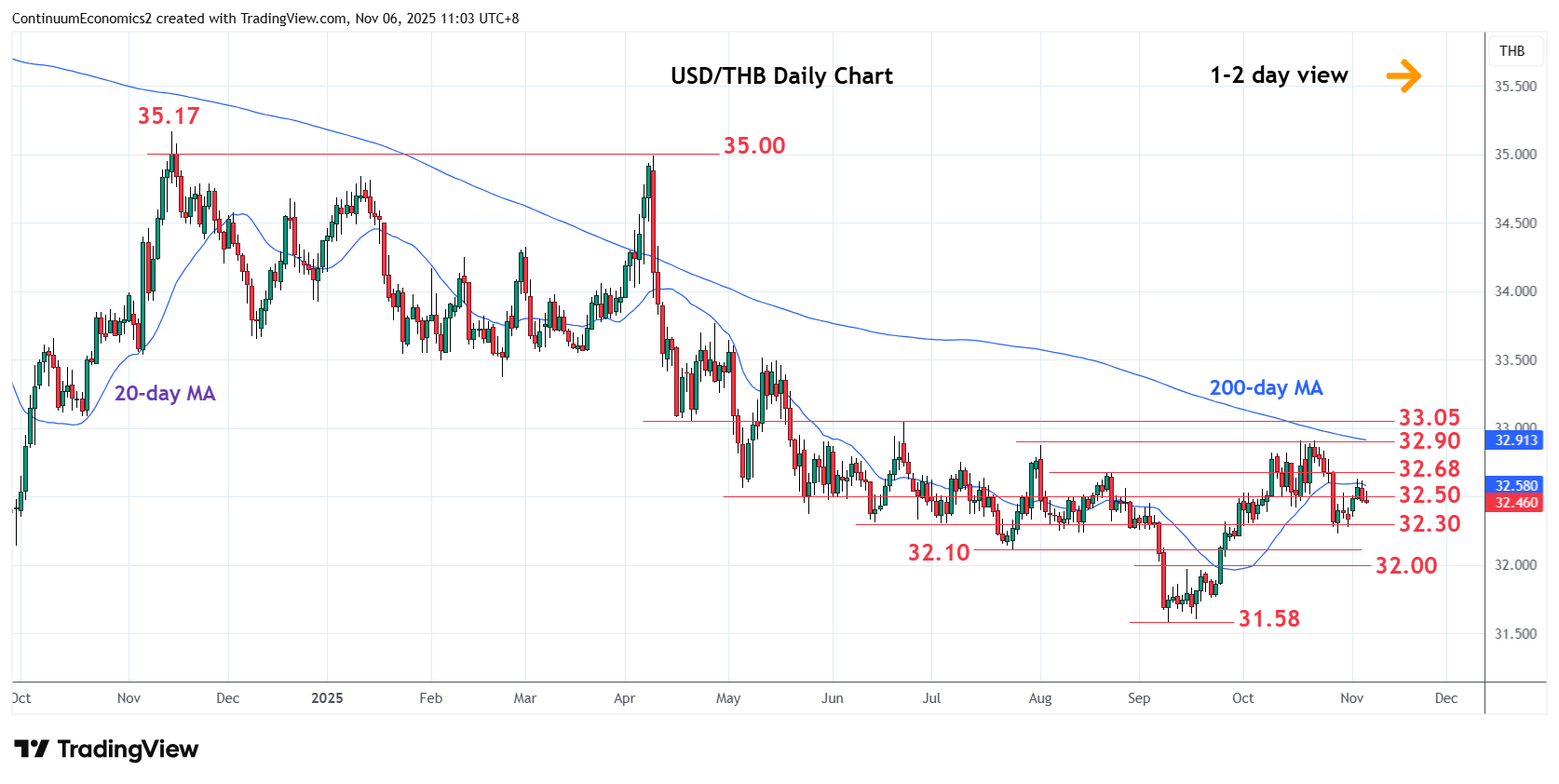 Bounce from the 32.23/32.30 support has given way to consolidation at the 32.50 congestion