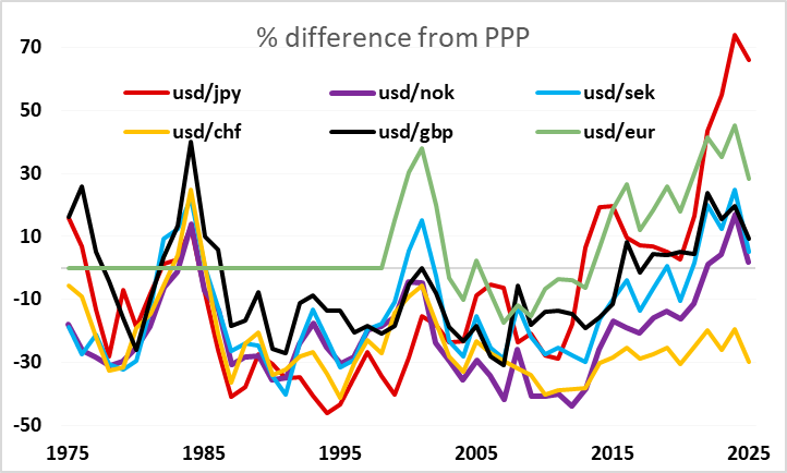 Before the Canadian data we have September Norwegian CPI in Europe, with the consensus looking for an unchanged y/y rate both in the headline and the core at 3.5% and 3.1% respectively. EUR/NOK has been mostly contained in an 11.30-12 range this year, but this is a range well above the historic norm. Norwegian yields remain attractive, the Norwegian economy has continued to outperform, and the Norwegian fiscal and current account surpluses make it objectively a very safe haven. But the NOK has tended to sell off sharply on any risk negative news, and liquidity is poor, while the government pension fund is a consistent NOK seller as they invest in foreign assets. From once being valued as highly as the CHF, the NOK is now back on a par with the SEK and GBP in terms of its level relative to PPP. This looks wrong from a big picture perspective, and while the timing of a break higher is hard to forecast, and is unlikely to come in response to this (or any other) Norwegian data, we still favour the NOK upside as a long term play.