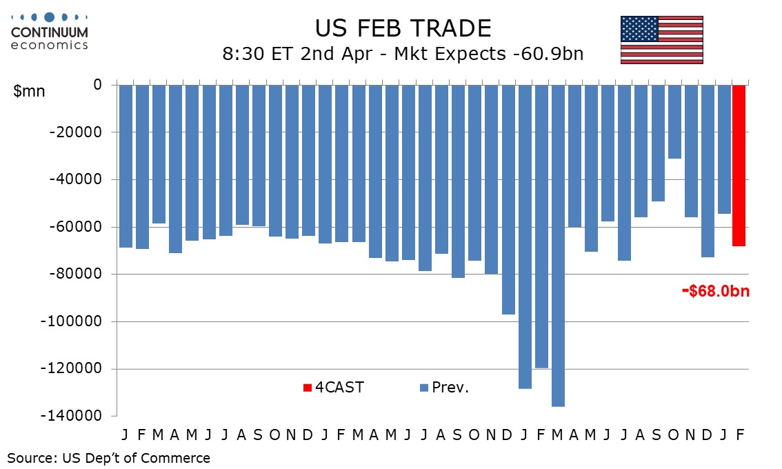 Preview: Due April 2 - U.S. February Trade Balance - Volatility continuing, deficit to bounce after January decline
