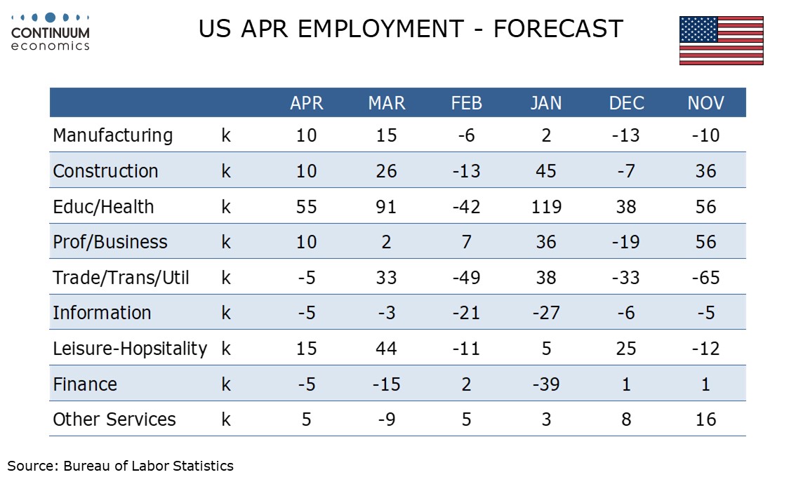Preview: Due May 8 - U.S. April Employment (Non-Farm Payrolls) - Not as strong as March but some positive signals