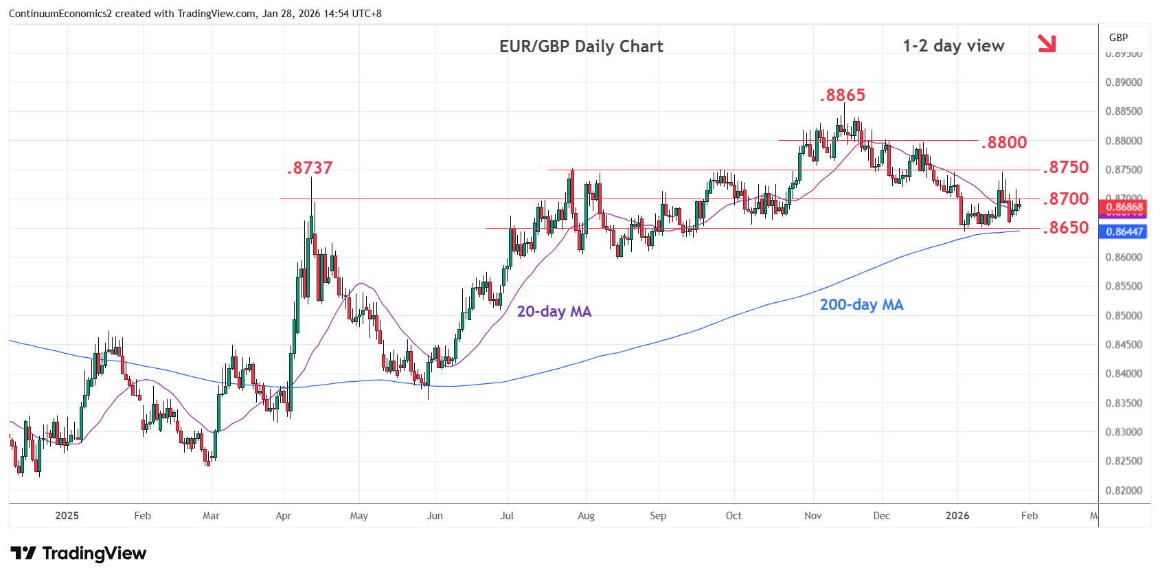 Chart EUR/GBP Update: Range-bound within .8750/.8650 area