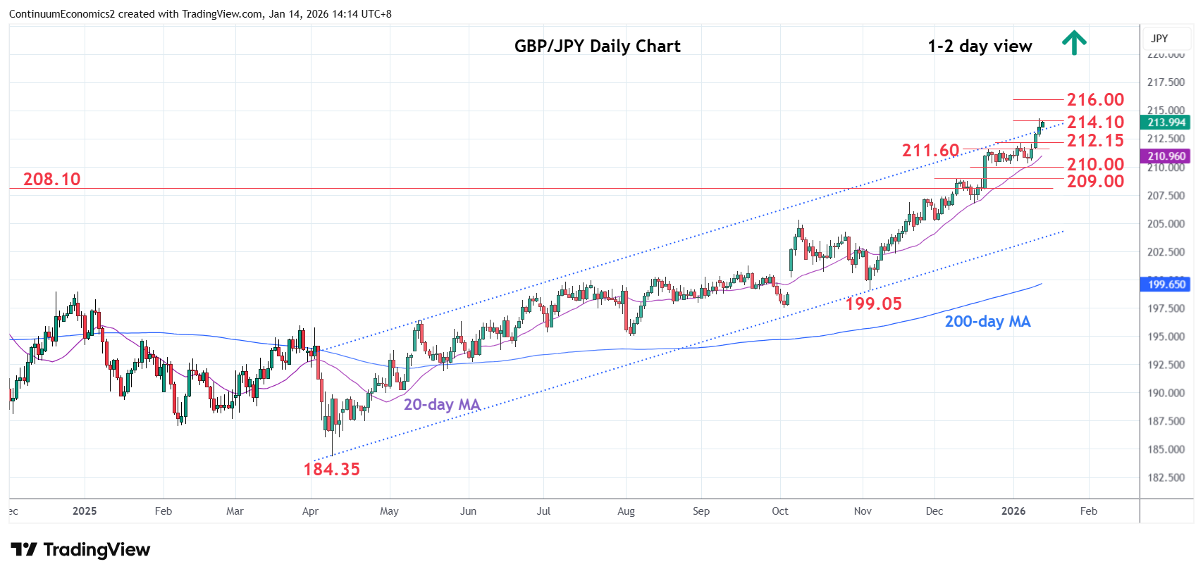Chart GBP/JPY Update: Consolidating test of 214.00/10 resistance