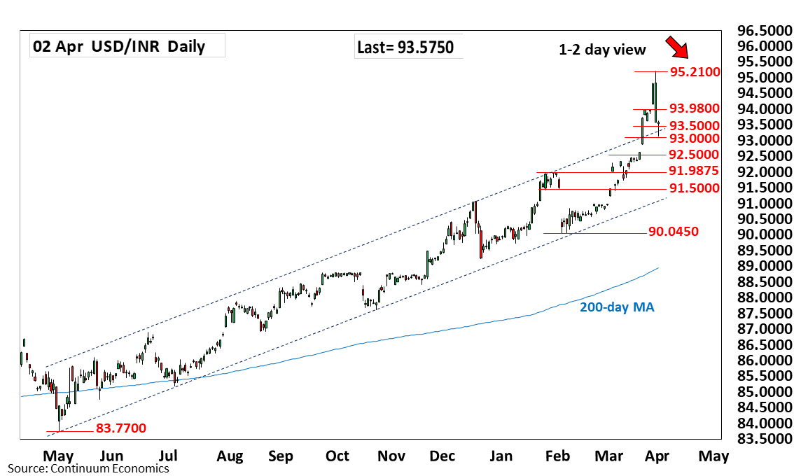Chart USD/INR Update: Extend sharp pullback from 95.2100 high