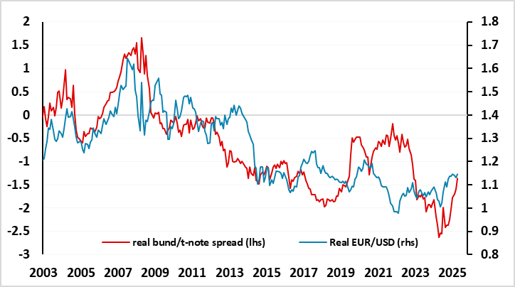 Figure 1: Real EUR/USD and the real 10 year US/Germany yield spread