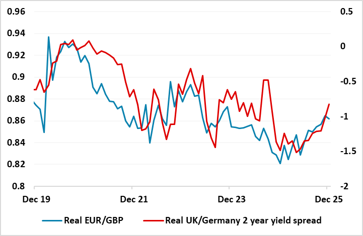 Figure 7: Real EUR/GBP and real 2 year yield spread