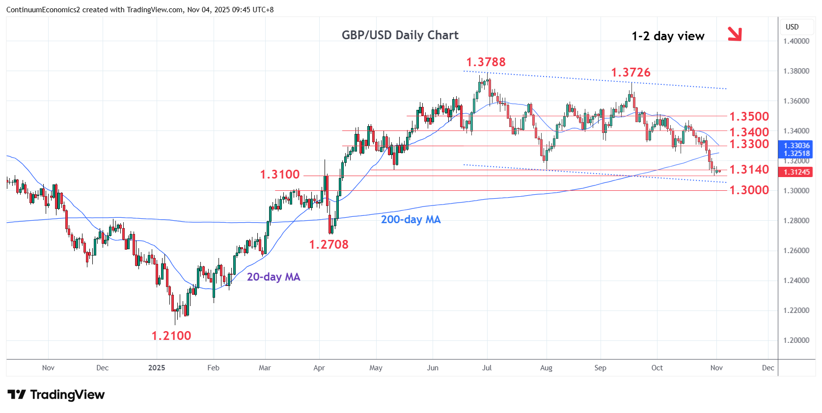 Chart GBP/USD Update: Consolidating at 1.3100 level, but still heavy