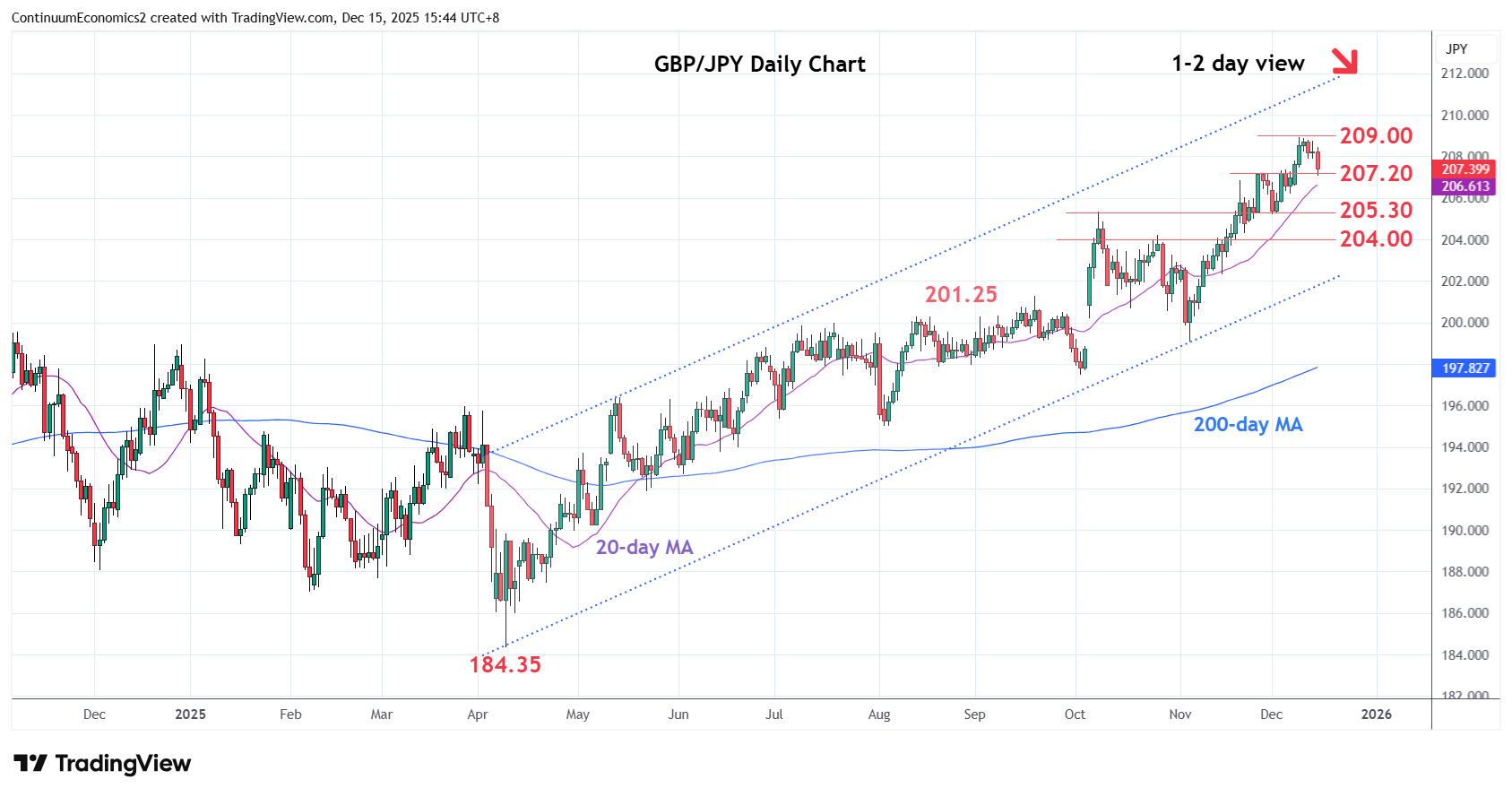 | R1 | 209.00 | ** | 9 Dec YTD high | S4 | 204.00 | ** | congestion |