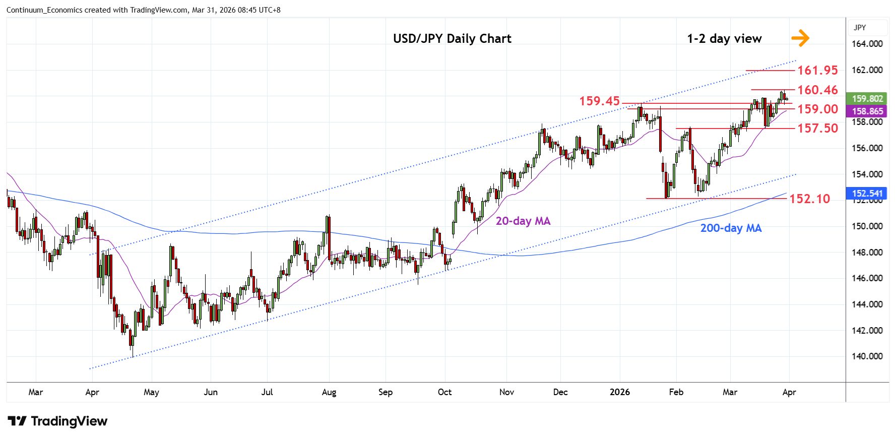 | R1 | 160.46 | ** | 30 Mar YTD high | S4 | 157.50 | ** | 19 Mar low |
