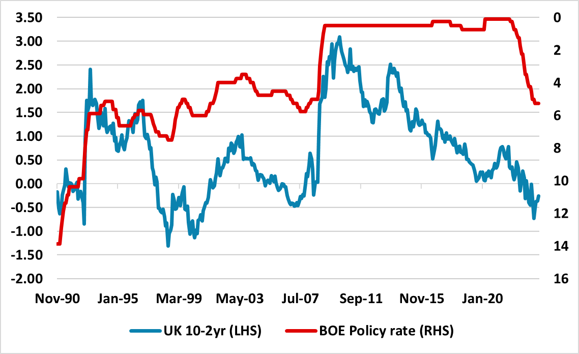 Figure 5: 10-2yr Gilt Curve and Inverted BOE Policy Rate (%)