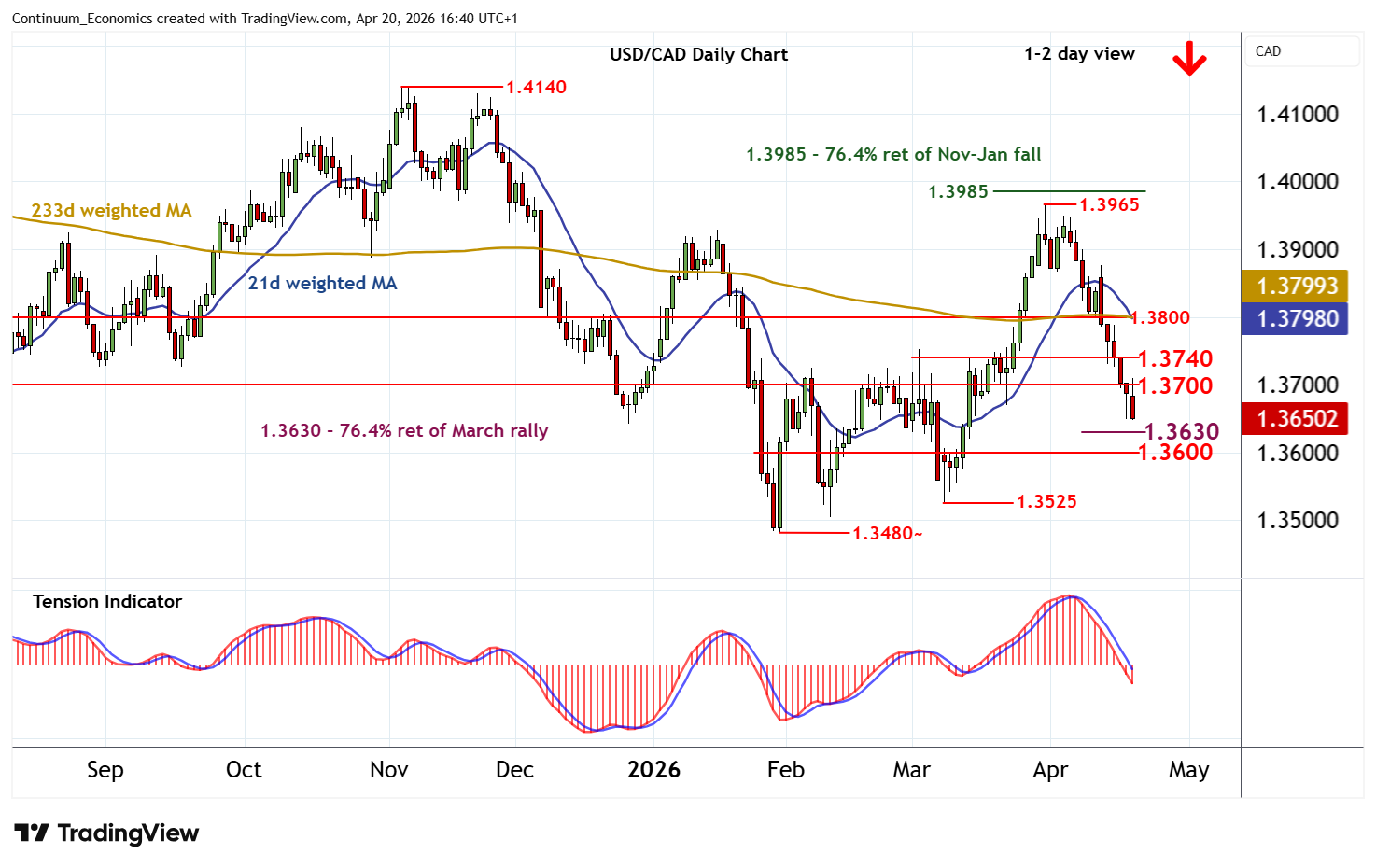 Chart USD/CAD Update: Focus on strong support at the 1.3630 Fibonacci retracement