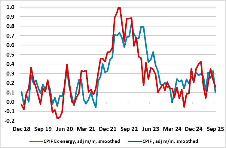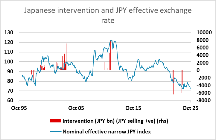 Plenty of volatility overnight, with USD/JPY getting another leg up from weaker than expected wage data, which further reduces the chances of a BoJ rate hike at the end of October meeting. However, the weakness of the JPY to some extent counterbalances this, as the sharp decline seen in the last few days may convince the BoJ of the need for some action if we don’t see a turn. Indeed, these look like conditions that could attract FX intervention if we don’t see some stabilisation in the near future.