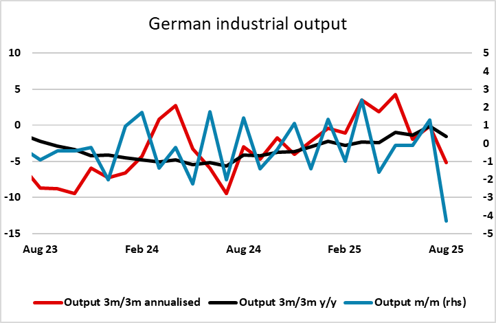 The European data this morning sees a much weaker than expected reading on German industrial production, following the weak orders data yesterday. While this is likely due mainly to seasonal car plant closures, it still paints the picture of weakening German and European growth which may weigh on the EUR, although EURUSD is initially not much changed after an initial dip.
