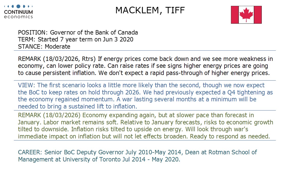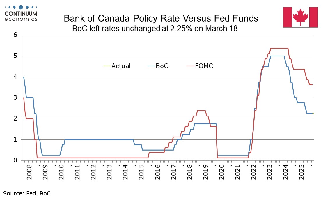 Even in January the BoC stated that uncertainty was heightened, with US trade policy then its main sources. Governor Macklem stated the Iran war has added a new layer of uncertainty, with its breadth and duration seen by the BoC as highly uncertain. The BoC did downplay a weaker than expected 0.6% annualized decline in Q4 GDP, seeing that as largely due to inventory depletion, but added that recent data suggests than near-term growth will be weaker than anticipated in January. With both January and February having delivered significant declines in employment, they noted that the labor market remains soft, showing that the downgrade on the economic view comes from recent data not risks generated by the war.