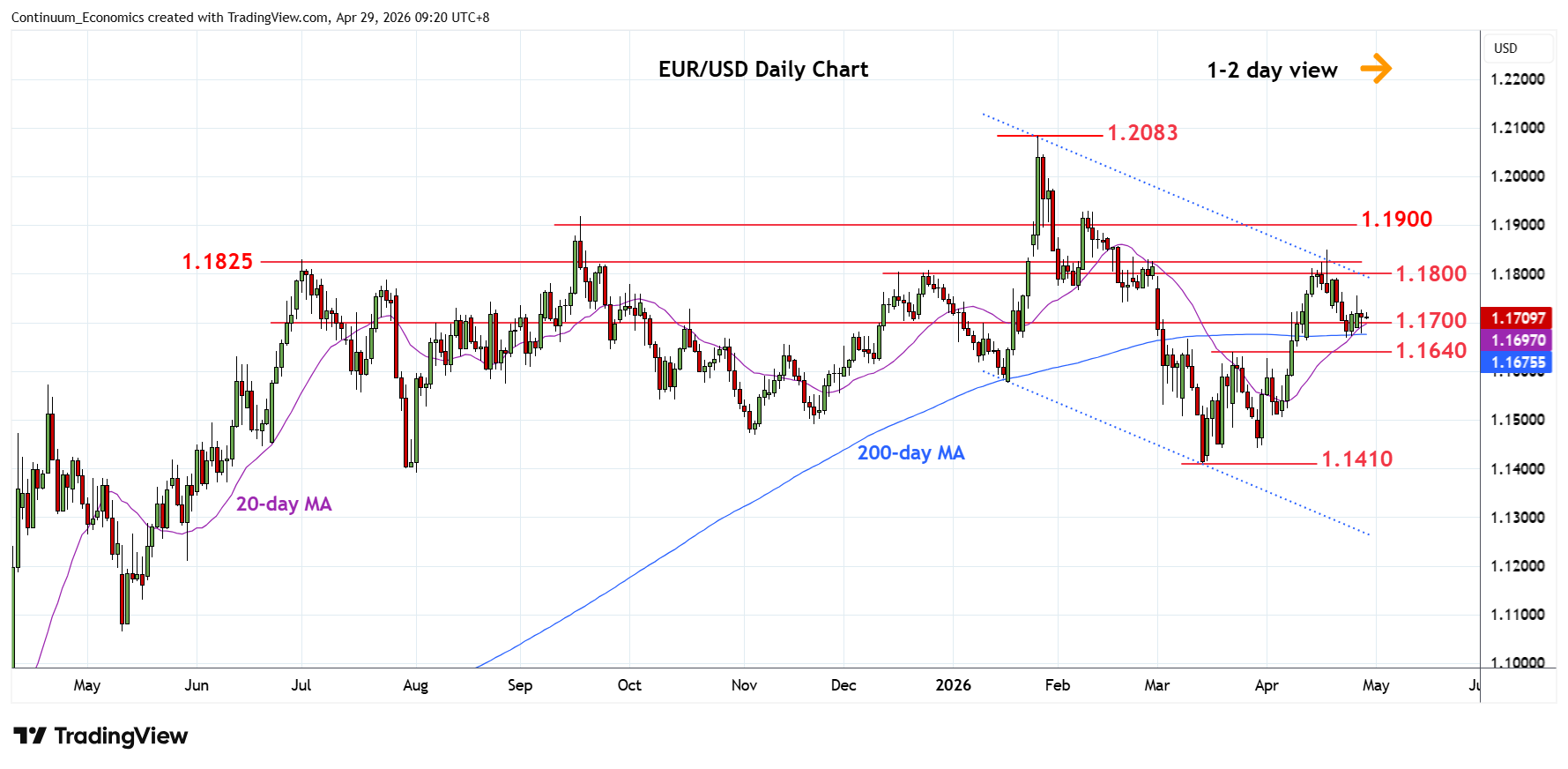 Chart EUR/USD Update: Consolidating above 1.1670 low