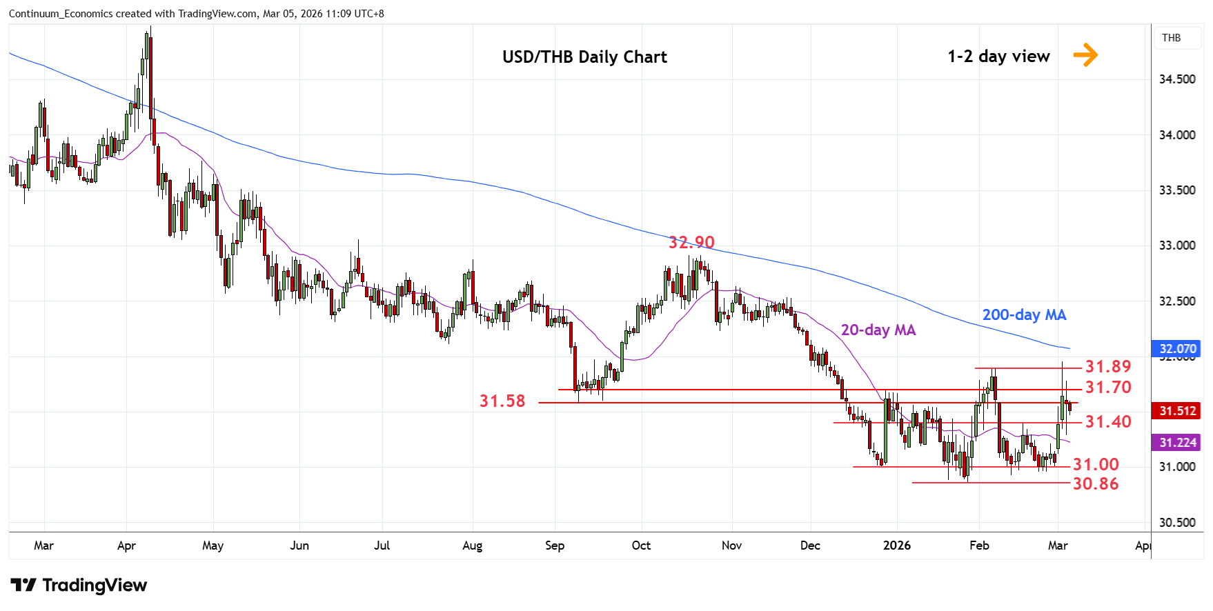 Chart USD/THB Update: Consolidating, room for higher later