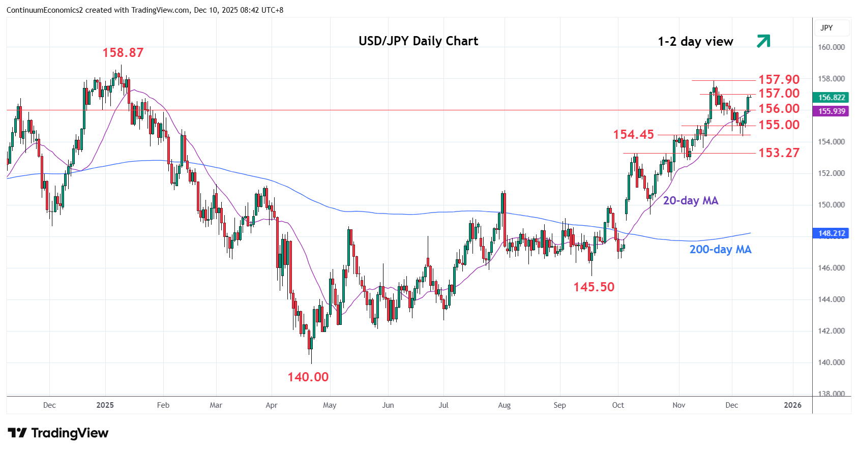 Consolidation at the 156.00 level has given way to break to reach the 157.00 level