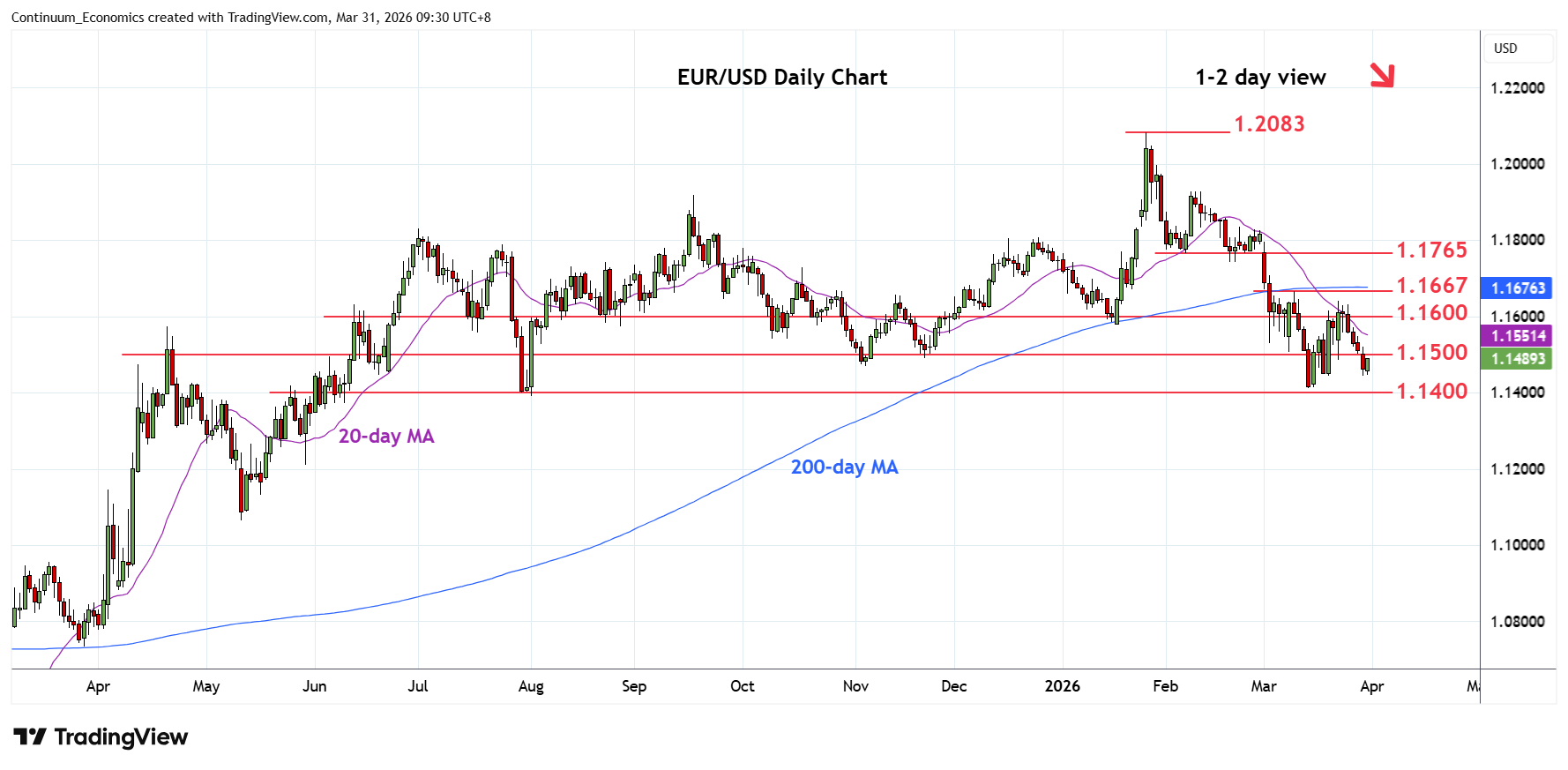 | R4 | 1.1640 | ** | 23 Mar high | S1 | 1.1450 | * | congestion | |