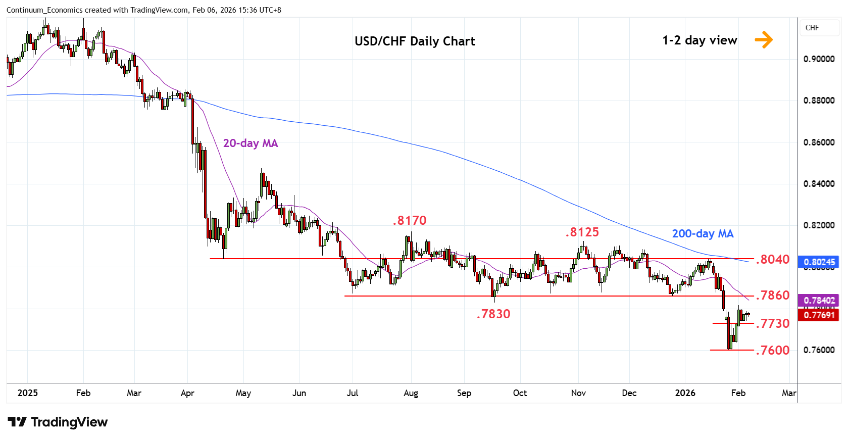 07:40 GMT - Range-bound below the .7817 Monday's high as prices consolidate bounce from the .7600, January current year low. Positive daily studies suggest scope for break here to further retrace the January losses to strong resistance at .7830/.7860 area and .7900 congestion. However, gains are seen corrective and expected to give way to renewed selling pressure later. Meanwhile, support is at the .7730/.7700 area and see break here needed to return focus to the downside for retest of the .7600 low. Lower will see room to the .7500/.7400 congestion.