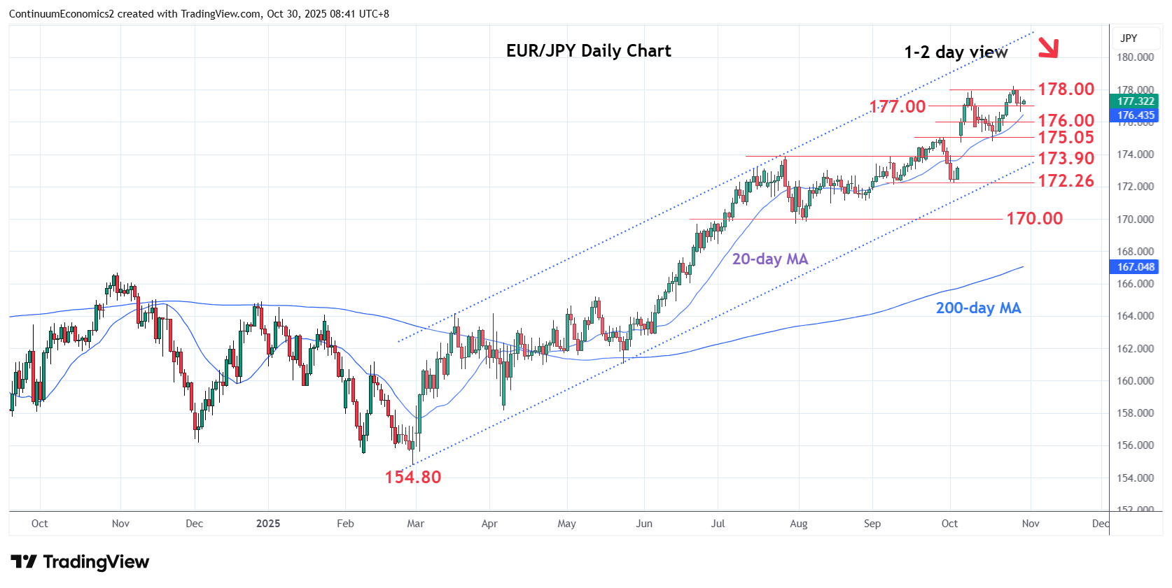 Chart EUR/JPY Update: Consolidating above 177.00, room for lower later