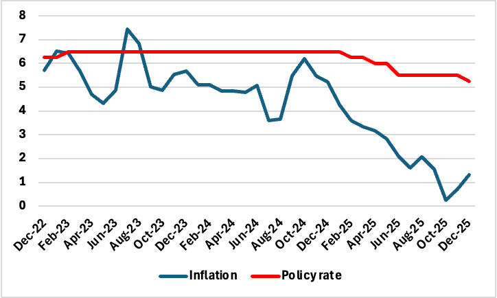 So far in FY26 (April–December), CPI inflation has averaged 1.7%, allowing the RBI to revise down its full-year forecast to 2.0–2.6%. The central bank has described the current phase as a “goldilocks” period of strong growth and low inflation, but the fading of base effects, alongside volatile core components, could limit further easing in the near term. Moreover, December marks the final CPI release under the existing base year (2012). From January 2026, India will adopt a new CPI series with 2024 as the base year and updated consumption weights, which may significantly alter inflation dynamics, especially in under-represented categories such as services, housing, and digital goods. This transition adds an element of statistical uncertainty at a time when policymakers are trying to recalibrate the monetary policy cycle.