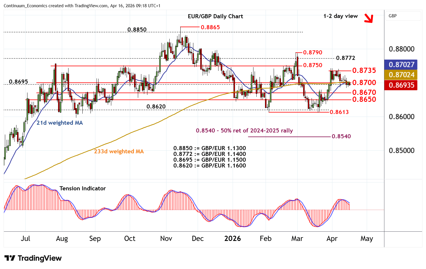 | R2 | 0.8735 | * | congestion highs | S3 | 0.8613/20 | ** | 4 Feb (m) low; GBP/EUR 1.1600 | |