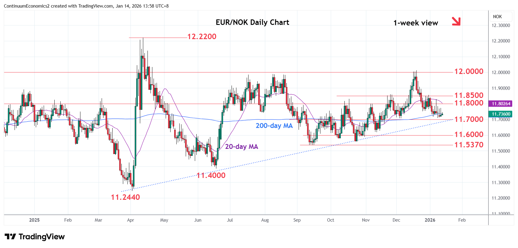 Chart EUR/NOK Update: Consolidating at 11.7100 support