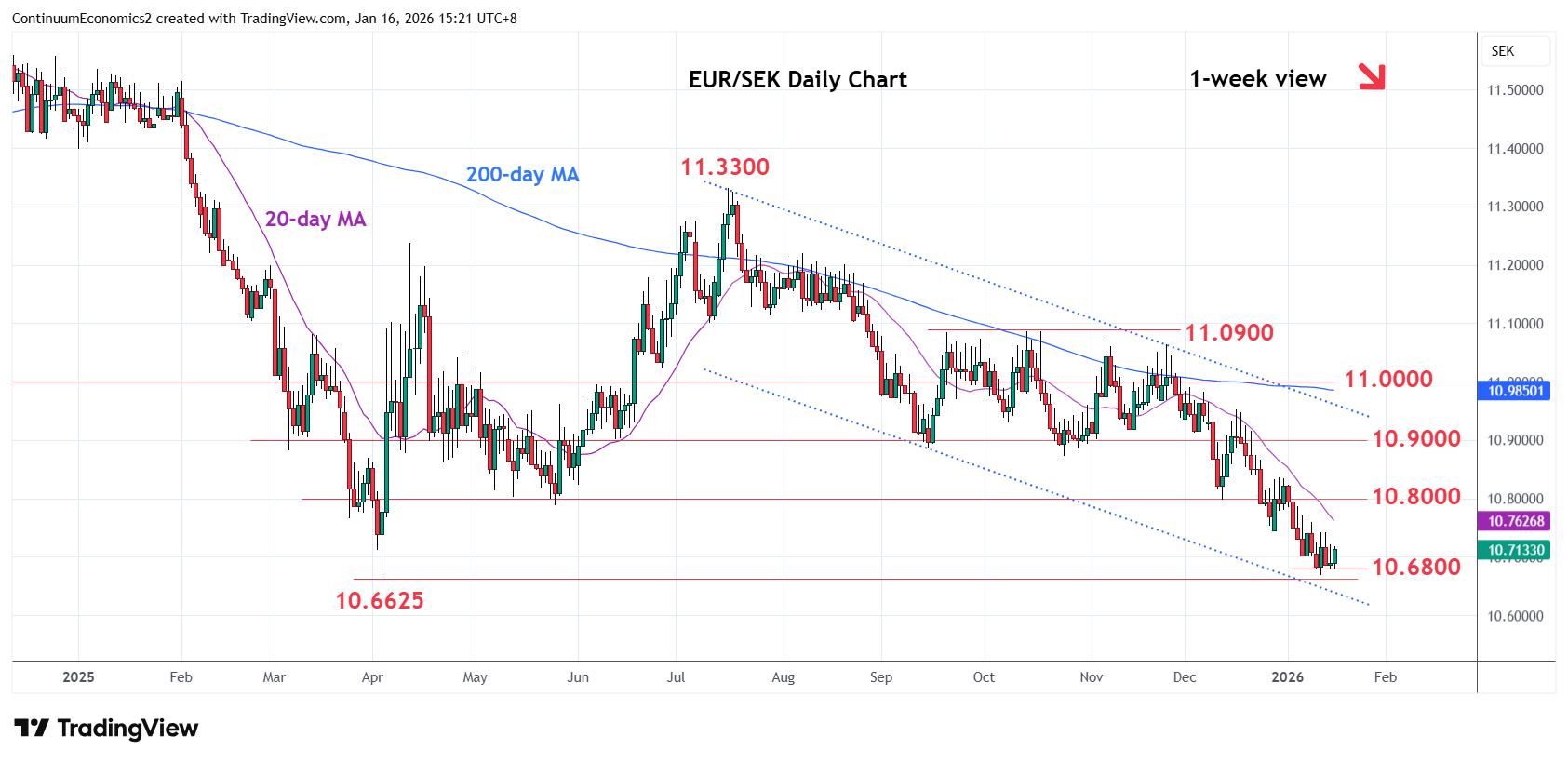 Chart EUR/SEK Update: Consolidating test of 10.6800/10.6625 support