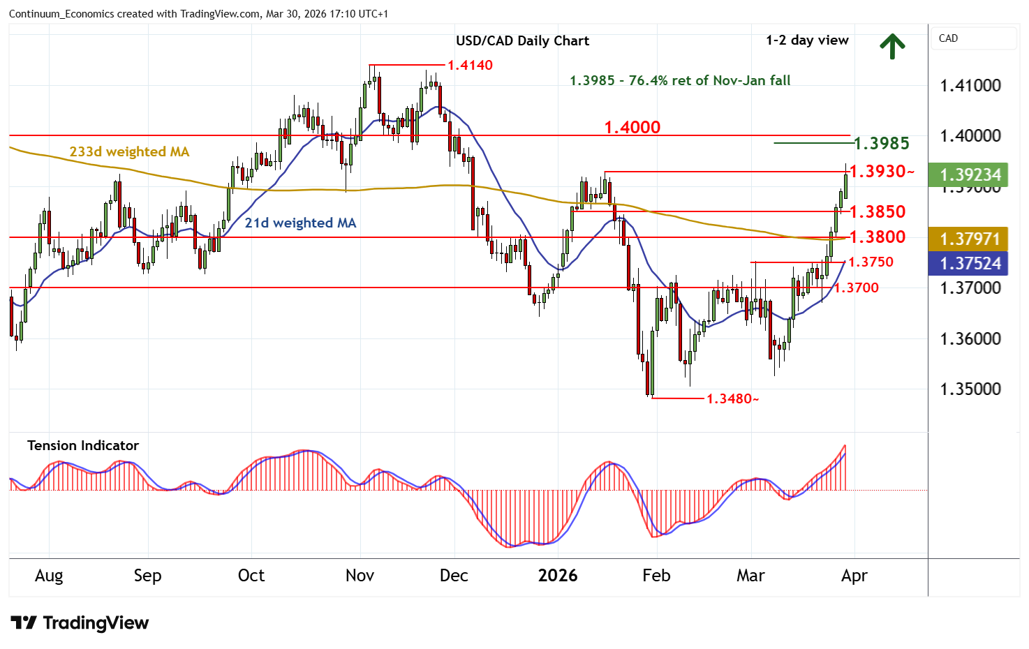 Anticipated gains have posted a fresh year high above the 1.3930~ monthly high of 16 January
