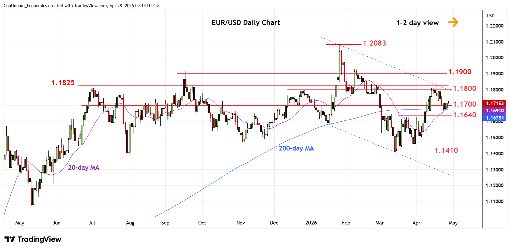| R4 | 1.1850 | * | 17 Apr high, congestion | S1 | 1.1670 | * | 23 Apr low, 200-day MA | |