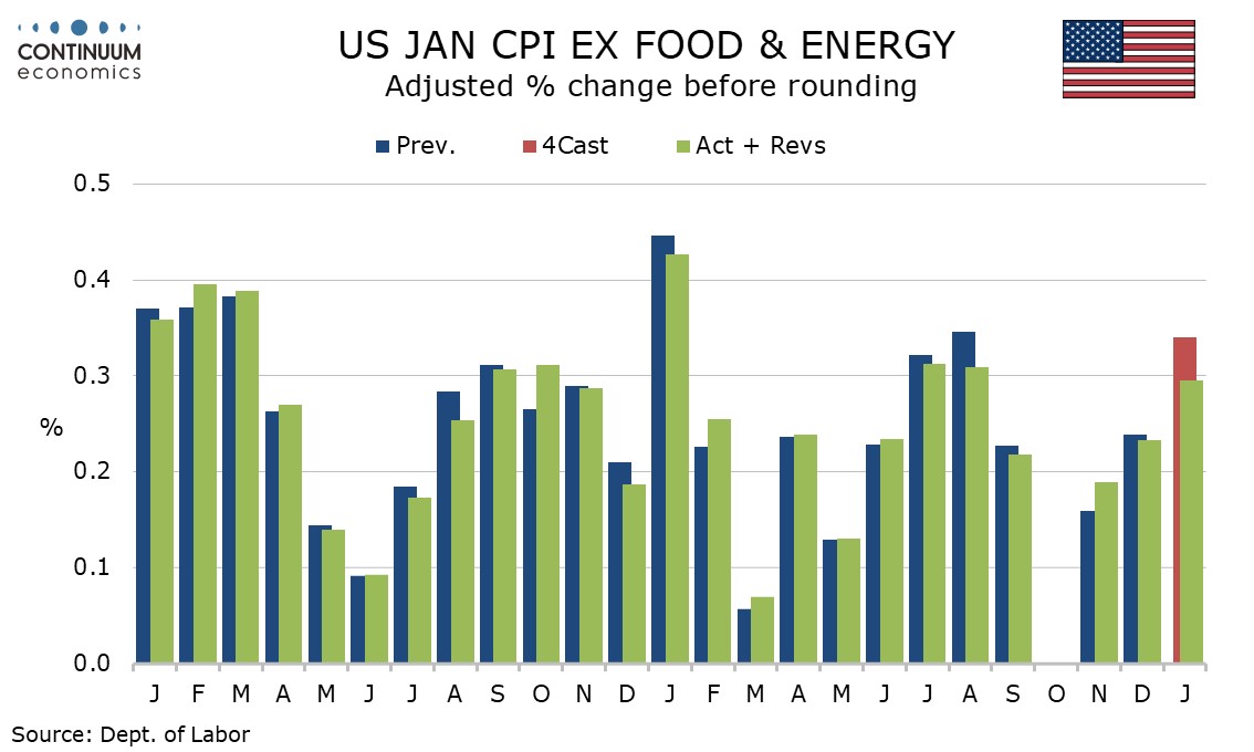 The Fed can take some modest comfort from the release even if the monthly core rate saw its firmest since August, given that January data has had a tendency to be firm in recent years. The new year does not appear to have produced a significant acceleration in tariff pass-through.