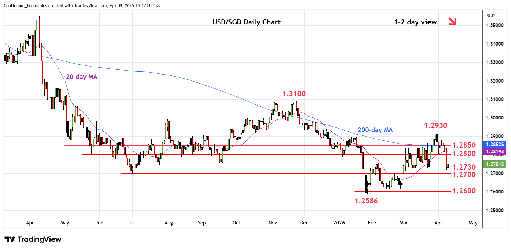 Chart USD/SGD Update: Consolidating test of 1.2730/00 support