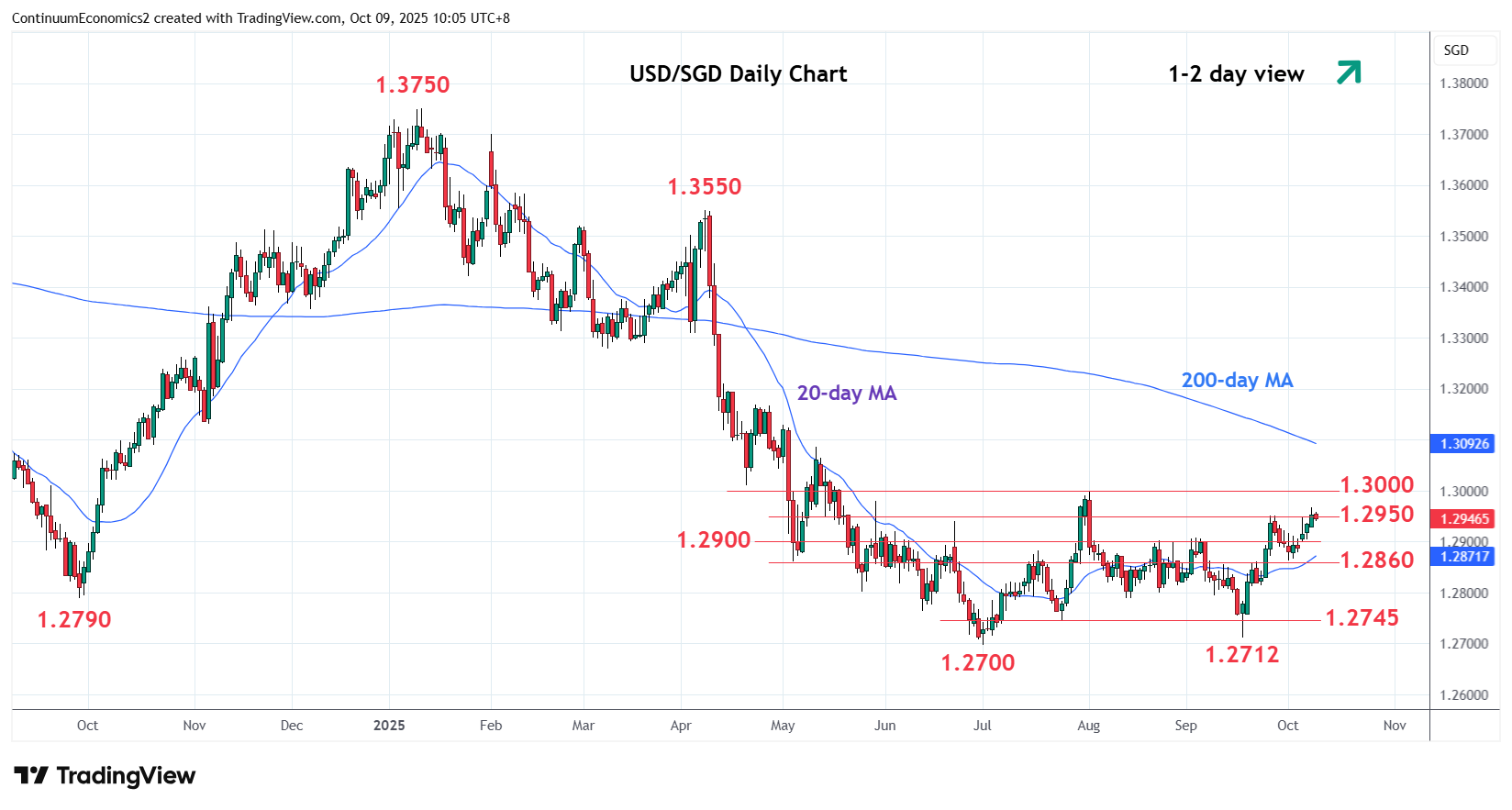 Chart USD/SGD Update: Consolidating at 1.2950, room for higher later